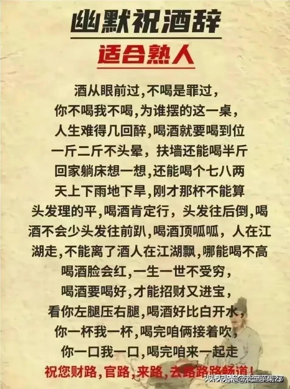 终于有人把“喝酒划拳顺口溜”整理好了,赶紧收藏起来看看吧。