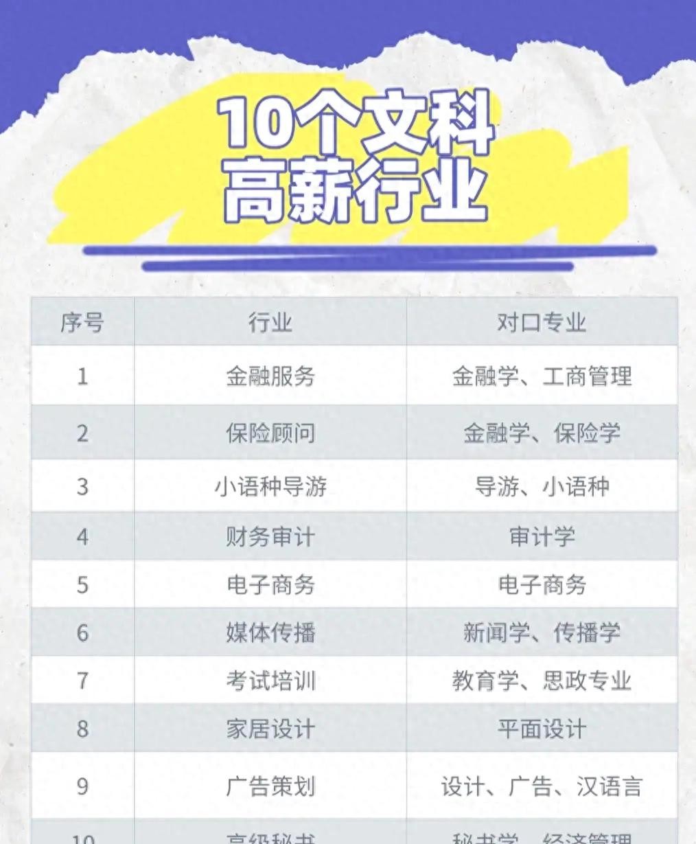 高薪行业,这三个字对文科生来说,就像一道光,特别是在“文科就业难”这句话耳濡目染的今天。有人戏言,文科毕业生手握“高大上”的专业名头,却只能在市场中摸索;也有人坚定认为,只要找准方向,文科生同样可以冲向职业金字塔顶端。本文罗列的文科十大高薪行业,让人看到了希望,但同时也让人心生疑虑:这些“高薪”真的是随手可摘的果实吗?