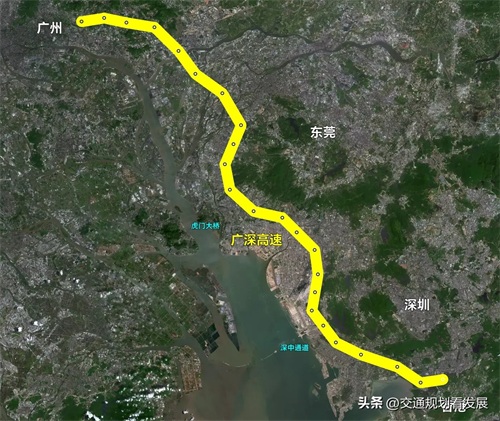 广深高速是国家高速公路京港澳高速和沈海高速的广州至深圳段,编号为G4和G15。
