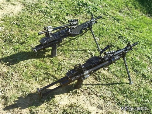 机枪通常可分为轻机枪、重机枪、轻重两用机枪和大口径机枪。轻机枪配属在班、排,所以称为班用轻机枪。为了能伴随步兵在各种条件下作战,对机动性要求比较突出。班用轻机枪主要是杀伤敌人的群集目标。有效射程比步枪远,一般为500~800米;火力猛,射击持续时间长;配有两脚架和提把。能在不同地形以不同姿势射击,包括行进间射击,所以其重量和外廓尺寸应尽量接近步枪。例如下图的伞兵型“米尼米”轻机枪,为了便于携带,除采用可伸缩枪托还换装了短枪管。