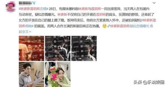 去年11月,盖玥希被拍到与林更新一同出席饭局,两人在包厢的亲密举动被狗仔偷拍到,那时两人的新剧正在热播,有网友怀疑俩人拍戏生情。之前他俩在社交平台的互动也让人感觉超出了一般朋友关系。