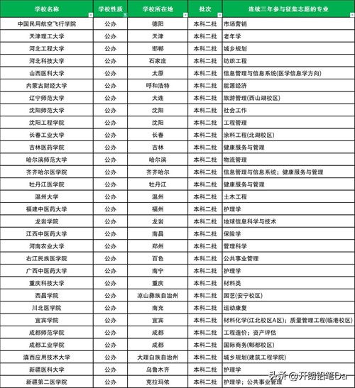 本文以四川省理科招生数据为例,为大家列举连续3年参加了四川理科征集志愿补录的公办二本大学名单。
