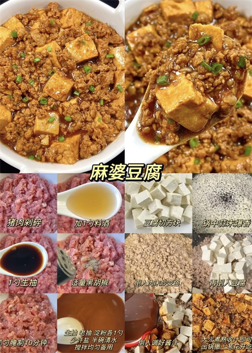 麻婆豆腐是一道色香味俱全的川菜,以其麻辣鲜香的口感赢得了众多食客的喜爱。将豆腐切块,焯水去腥味备用;葱姜蒜切末,豆瓣酱和花椒粉备好。热锅凉油,油热后倒入葱姜蒜爆香,加入豆瓣酱炒出红油,倒入适量清水,加入盐、糖、鸡精调味。将豆腐块倒入锅中,轻轻翻炒均匀,煮至汤汁浓稠,最后撒上花椒粉即可。