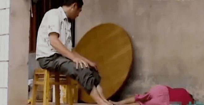 父母本想扶女儿起来,可她如同得了“软骨症”一样,站不起来。无奈之下,母亲只好将她背在身上。