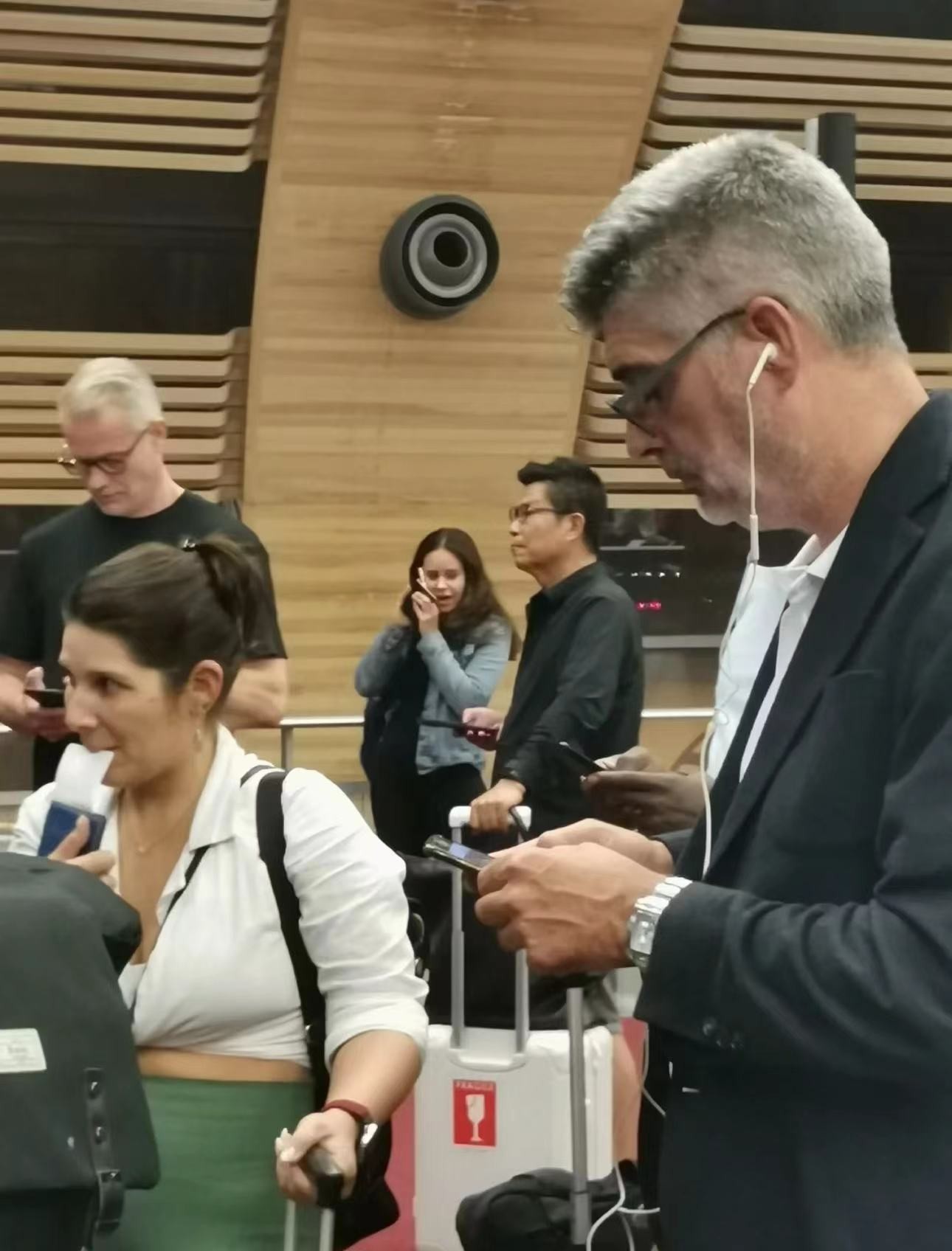 曝光的照片中,王中军穿着一身黑衣,打扮低调,只见他推着行李箱在机场排队等安检。已经63岁的他头发乌黑茂密,状态显得十分年轻。
