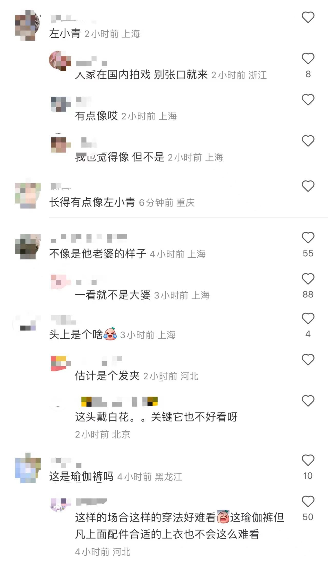 照片曝光后网友们议论纷纷,有人感叹照片中的女子和演员左小青有些相像,气质非常好。还有人表示这个女子不像是王中军的老婆刘晓梅,因此怀疑王中军是不是出轨了。另外,女子的穿着打扮,还有头上戴的白花也遭到部分网友吐槽,觉得她在公众场合穿成这样很不妥当。