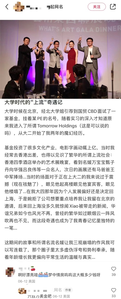 从这位网友的社交账号中能够看出,她疑似家境不菲,看售价600万美元(约4349万人民币)的豪宅,拥有各种奢侈品,大学期间便接触过上流圈,见过名媛万宝宝、甄子丹、向华强,还有王中军,因此她说的话似乎真实性比较高。