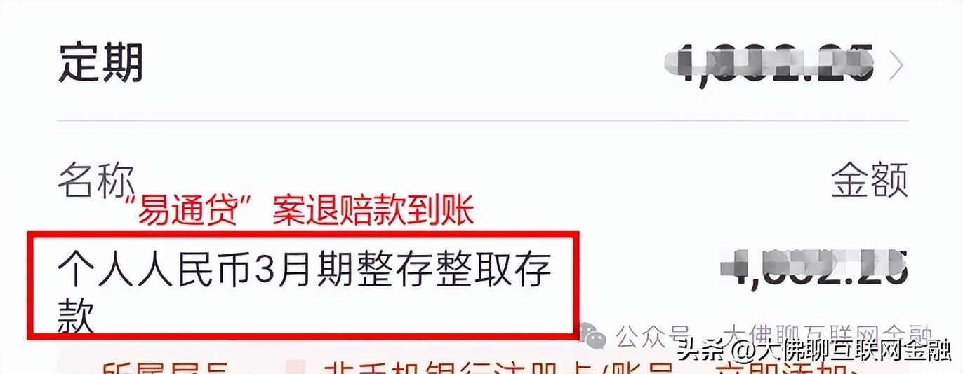 “易通贷”案终于等到了新的进展,已经有朋友收到了这次的案款。