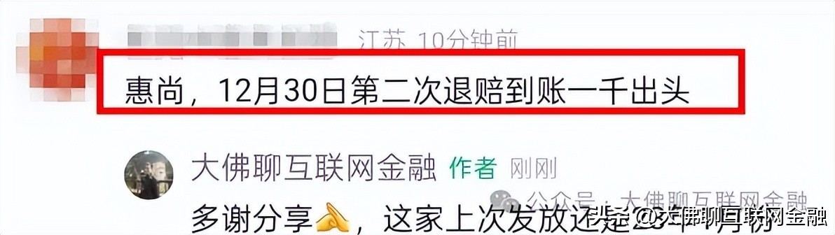 “惠尚”案是此前我们在2023年跟进过的一起已退赔案件,近期这边热心的朋友反馈,“惠尚”案已经进行到二次的案款发放了,2024年12月30日收到二次退赔款到账,案件首次发放自2023年1月4日开始。