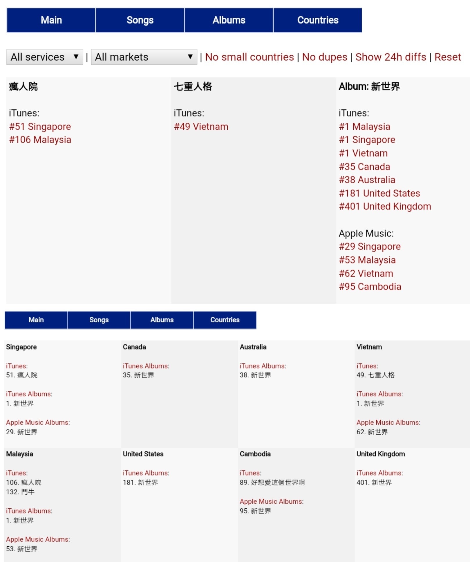 此外,这张专辑及其歌曲也在多个国家的iTunes榜上。