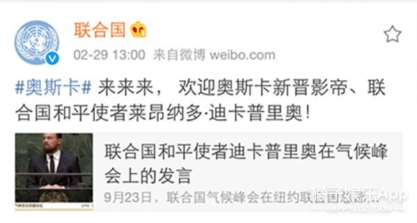 还懂蹭热度,当小李子拿下奥斯卡的时候,第一时间发出了祝贺微博,据说比“某浪娱乐”发得还快。