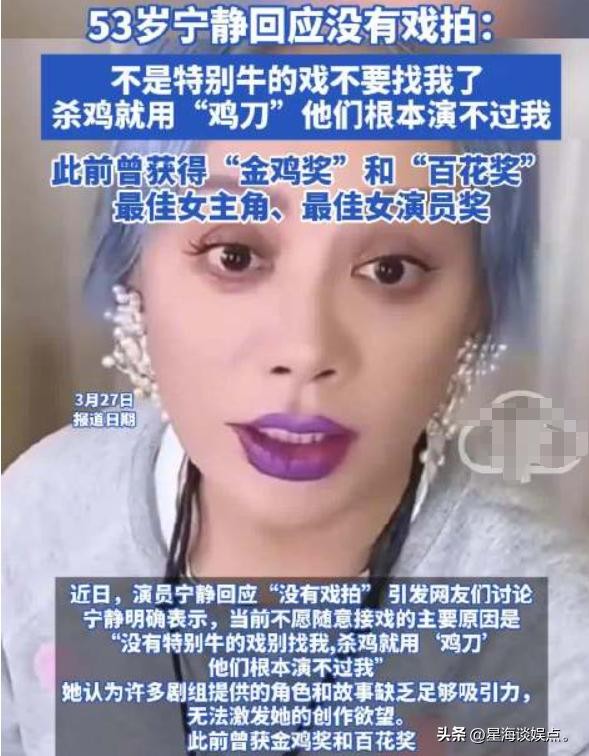 “杀鸡用什么牛刀?姐就是牛刀!”——昨儿晚上(3月27日)宁静直播间炸了!53岁的她直接怼网友:“说我没戏拍?烂本子递过来我都不稀罕接!”