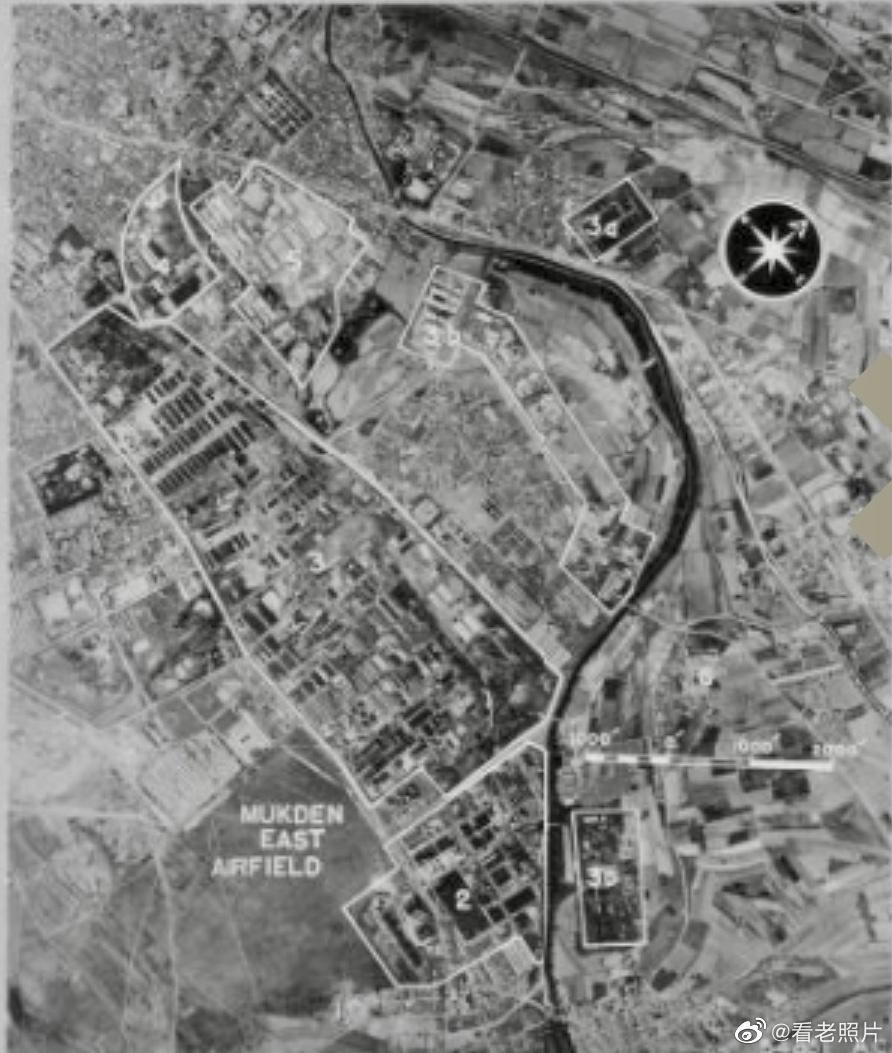 (11)1944年,沈阳。美军轰炸侵华日军的军事设施:图1和图2,飞机制造厂。图3,沈阳北机场。图4,沈阳东机场。