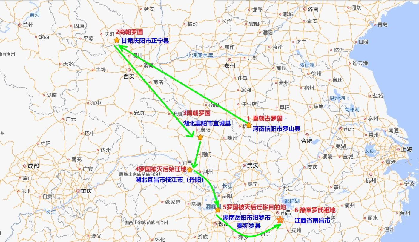 【罗国历史变迁总结,河南罗山>甘肃正宁>湖北宜城>湖北枝江>湖南汨罗>江西南昌】