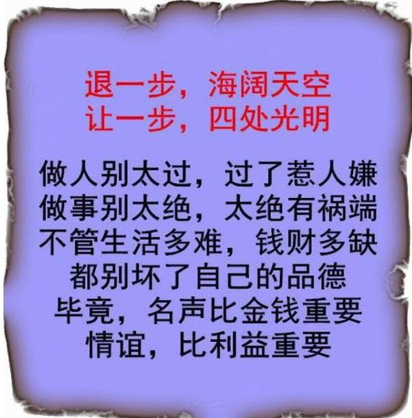 特别是邻居和亲朋好友及同事之间的事情更要留有余地,毕竟低头不见抬头见,你的生活和社交范围离不开这些人,如果把事做绝,不留余地,你将寸步难行,不但影响了自己,还将影响下一代的生活,给他们造成心理阴影。
