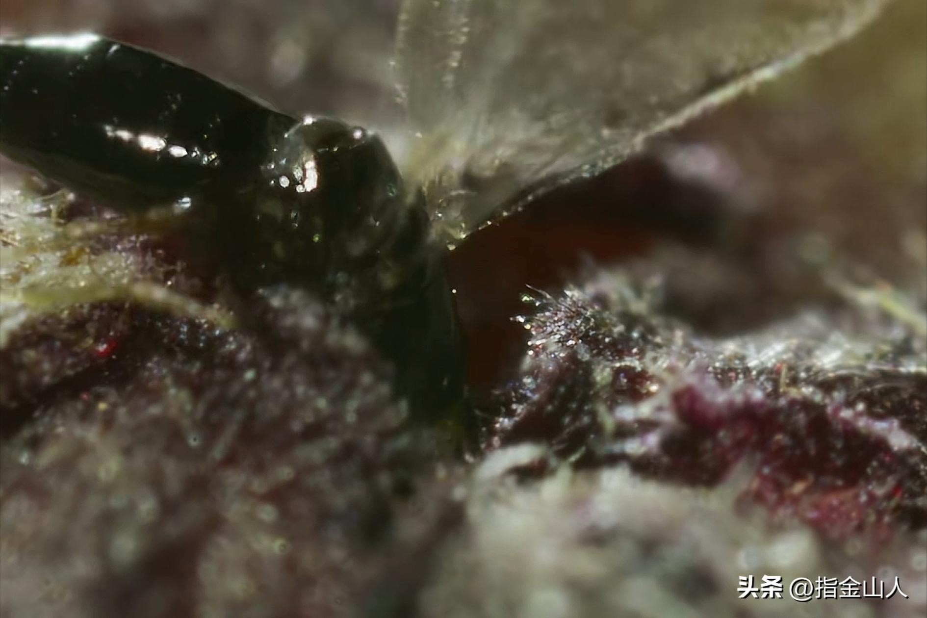 雌蜂携带花粉钻入榕果,既要为长花柱雌花授粉繁殖榕树种子,又在短花柱瘿花中产卵繁殖后代。这种"传粉换育儿所"的契约持续了8700万年,每个环节都体现着造化的精妙设计。