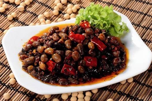 八宝豆豉简称豆豉,是临沂特产之一,迄今已有130多年的历史。明代《本草纲目》中都有记载。因其营养丰富、去腻爽口、食用方便,成为享誉中外的临沂地方名吃之一。