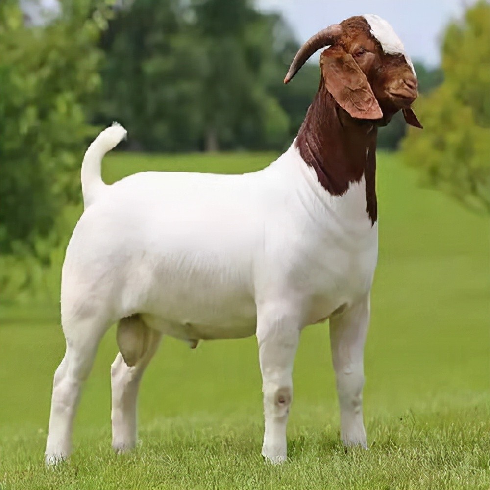 纯种的波尔山羊耳朵又宽又长,蹄子是黑褐色的,腿特别粗特别短,它的背毛为白色,头部和颈部呈褐色,额头到唇部有有一段白色的毛。耳宽下垂,耳朵特别长特别宽,背毛短而稀,公母羊全都有角,而公羊呢,角呈弯曲状态向后弯,与它的鼻子形成一道曲线,鼻子比较高隆,它的角向后弯曲与鼻子形成一个特别的孤状,它的体躯深长肌肉丰满,背部宽阔平直,四肢端正。