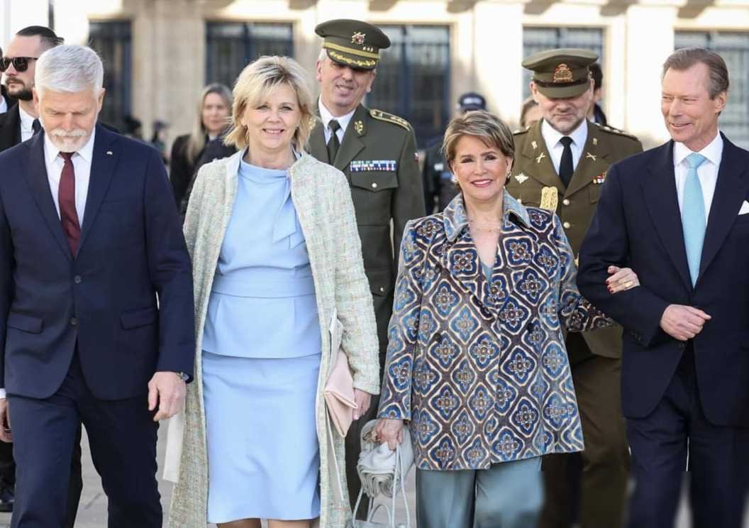值得一提的是,在欢迎仪式上,伊娃·帕夫洛娃的着装同样备受瞩目。她选择了一款小香风格的风衣,内搭一身淡蓝色套裙,整体造型简约大气,展现了她优雅的气质和时尚品味。与卢森堡大公夫人形成了有趣的对比,伊娃·帕夫洛娃展现出了自己的个性魅力。