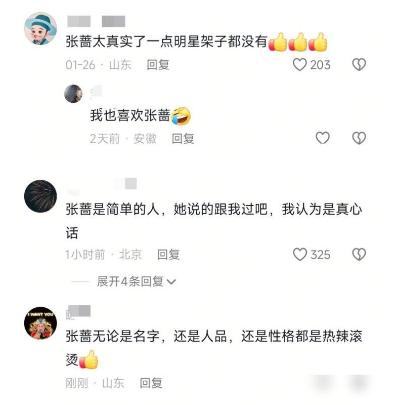 张蔷的这种表达方式让人觉得非常真诚和亲切,她用真实的情绪来表达自己的感受,让人感到非常亲切。 她不会把情绪隐藏起来,也不会故意去夸大自己的情绪,而是以一种真实、平和的态度来面对自己的情绪,这种态度让人感到很舒服。