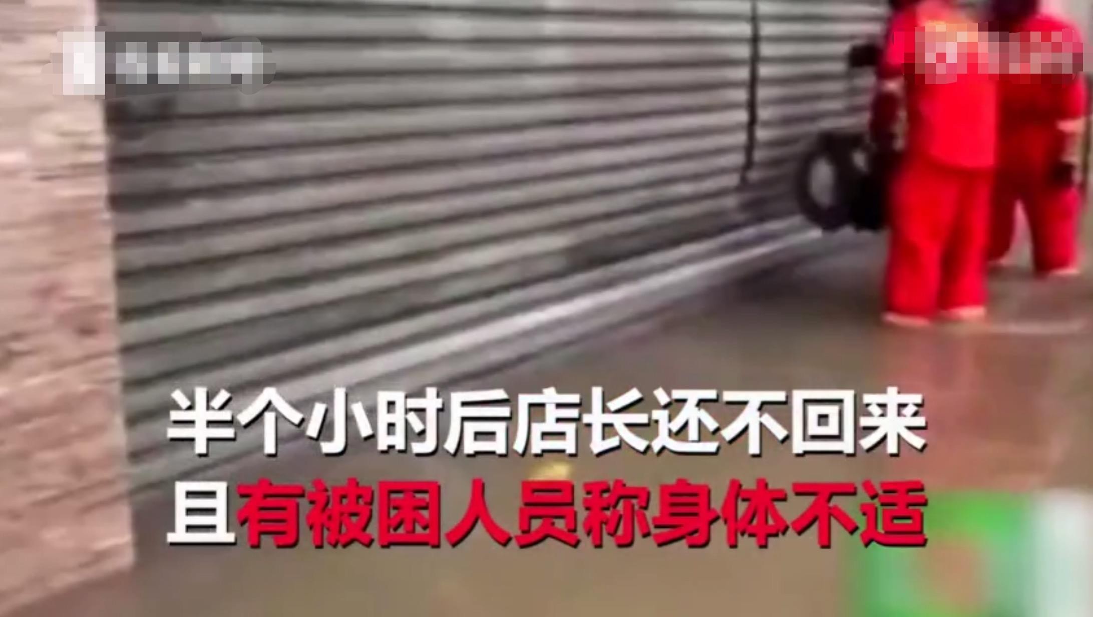北青报记者注意到,现场视频显示,被困人员被救以后,店长还与消防员纠缠,不愿放他们离开,还曾提出要消防员赔偿,说他们是故意将门锯破。消防员无奈报警,请民警前来协商。在民警赶来的路上,店长冷静下来放消防员离开。
