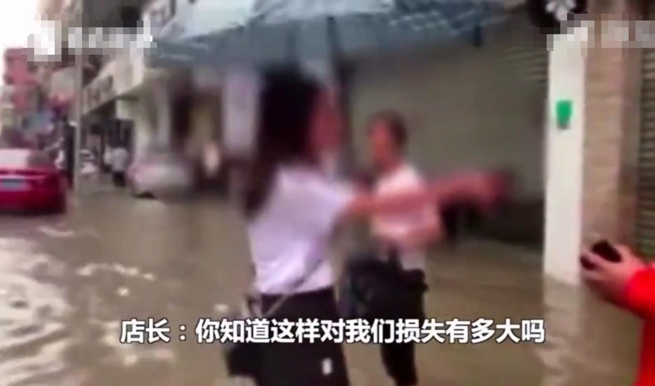 消防员现场了解到,服装店的卷帘门是电动的,两名顾客在店内购物,下雨以后电源就把卷帘门放下来避免雨水打湿店内衣物,结果没想到不久后遭遇停电,卷帘门无法打开,导致7人被困。“由于店内空间狭窄,被困人员精神压力很大,雨水越积越深,已经快没到膝盖。”廖队长介绍,被困人员报警请求帮助,他们曾尝试用工具撬开卷帘门,但没有成功。遇到这种情况,为了快速解决被困人员,消防员需要踞开卷帘门,现场却遭到了店长的阻挠。