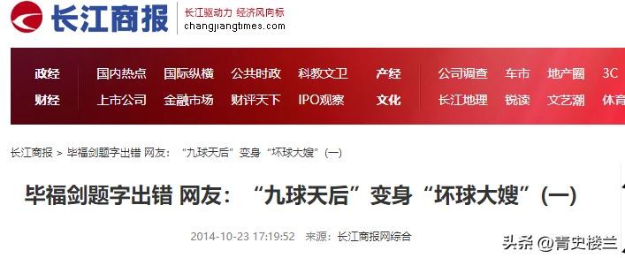 长江商报 《毕福剑题字出错 网友:“九球天后”变身“坏球大嫂”》