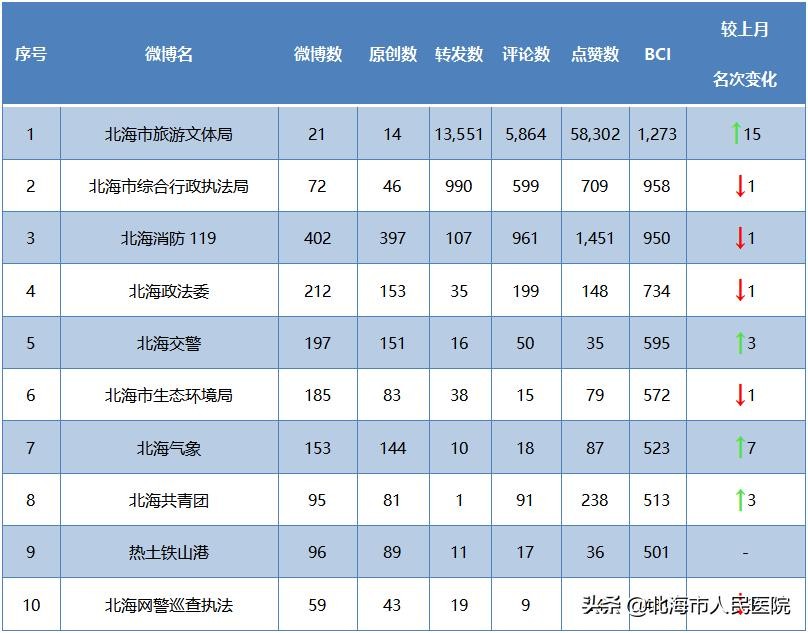 北海新媒体排行榜由北海市互联网舆情中心联合北京清博大数据科技有限公司,针对本市(含县区)政务服务类微信公众号、官方微博;媒体类微信公众号(包括自媒体公众号)的传播影响力进行大数据统计分析。