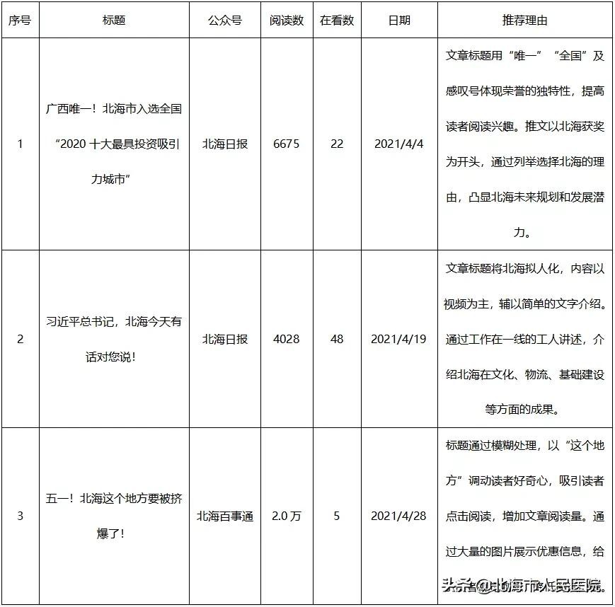 北海市新媒体2021年4月排行榜新鲜出炉!我院微信服务号位列全市政务微信第2