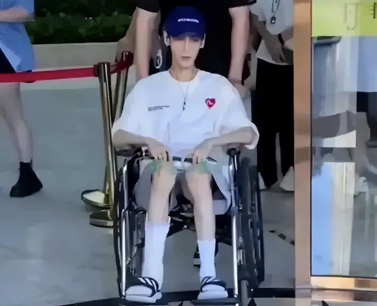 罗云熙的瘦弱程度,在后期拍摄工作中更是加剧。有机场照片显示,他的腿瘦得只比小女孩粗一些。与正常体格的男性合影,他就像个未发育好的小青年。还有媒体拍到他乘坐轮椅出行的情景,整个人瘦骨嶙峋、精神萎靡。