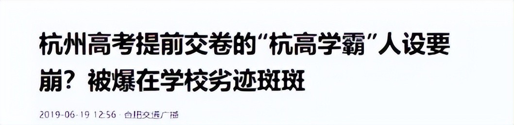 《杭州高考提前交卷的“杭高学霸”人设要崩?被爆在学校劣迹斑斑》——合肥交通广播