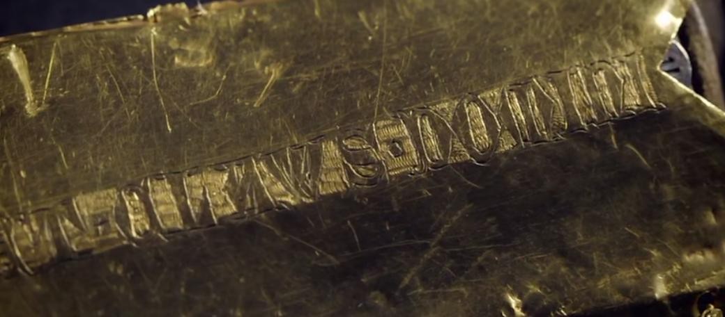 因为在黄金外鞘之下,还有一个属于十一世纪的白银内鞘。在这个内鞘上,也有一段铭文"内有一枚来自十字架的铁钉"。
