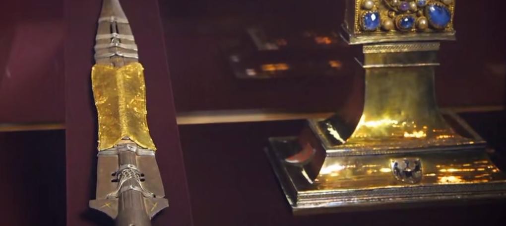 也就是说,一柄制作于公元八世纪左右的矛枪,外面被套了一个十四世纪的黄金外鞘。然后在其中镶嵌了一枚基督教早期,被认为是钉入耶稣身体的铁钉。也由于这枚铁钉,"朗基努斯之枪"也真正成为了一件圣物。哪怕里面镶嵌的铁钉与耶稣无关,但这柄"命运长矛"的传奇故事,也赋予了它足够的价值!