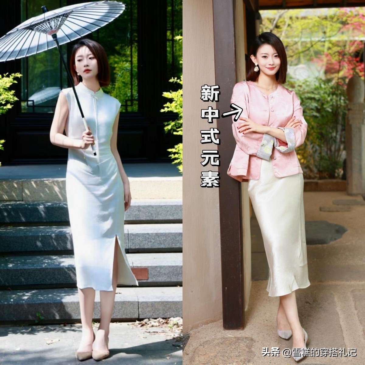 新中式风的单品挑选也很丰富,比如绸缎衬衫、唐装、印花吊带裙……只要有中式风元素的加入,再通过高质感的面料进行设计,就能轻松穿出高贵感,好气质自然扑面而来。