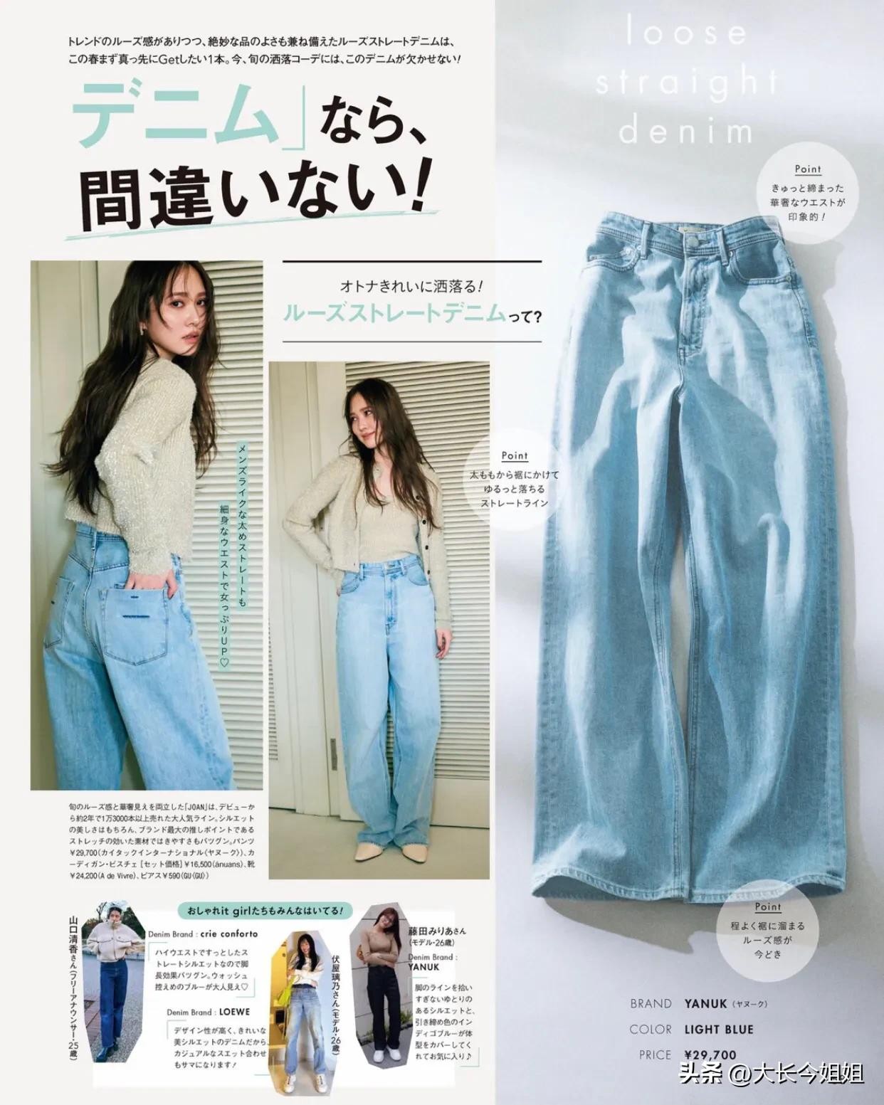2 牛仔裤是衣橱里不可缺少的存在,即使经历时代和季节也不会改变,所以很容易挑战流行趋势,在选择上应采用有个性品味的设计。