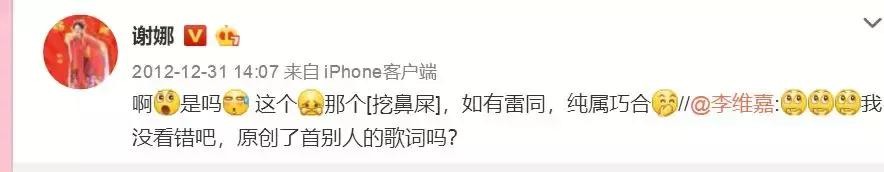 2012年12月31日,谢娜发了4条微博,提到了李维嘉。