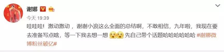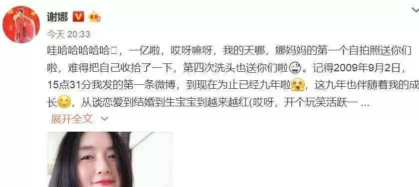 谢娜微博粉丝突破一亿!9年发了9328条微博!