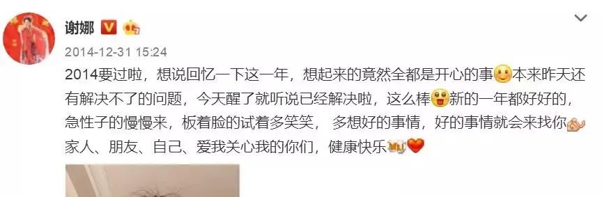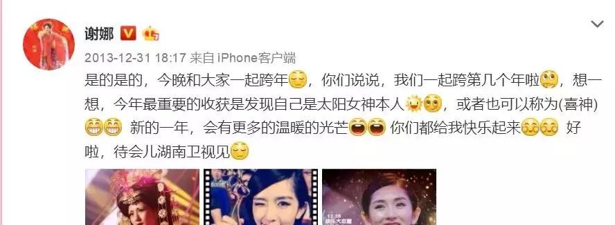 2013年12月31日,谢娜发了一条微博,只提到了自己。