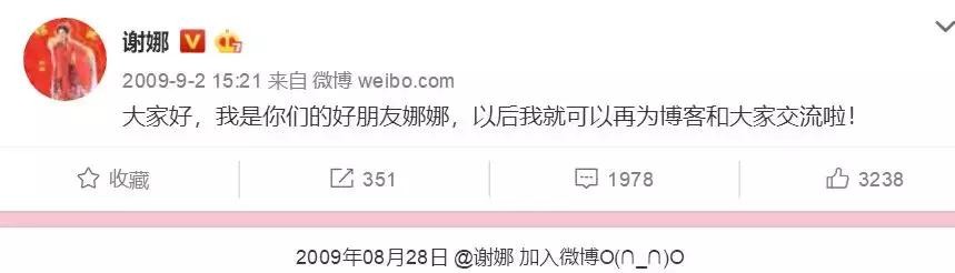 又过了两个多星期,也就是2009年9月2日,谢娜发了她的第一篇微博。