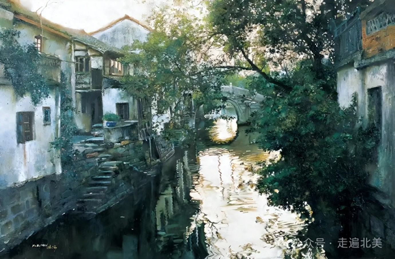 在潘鸿海的江南水乡作品中,