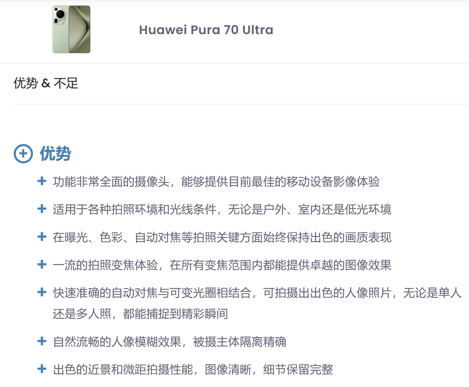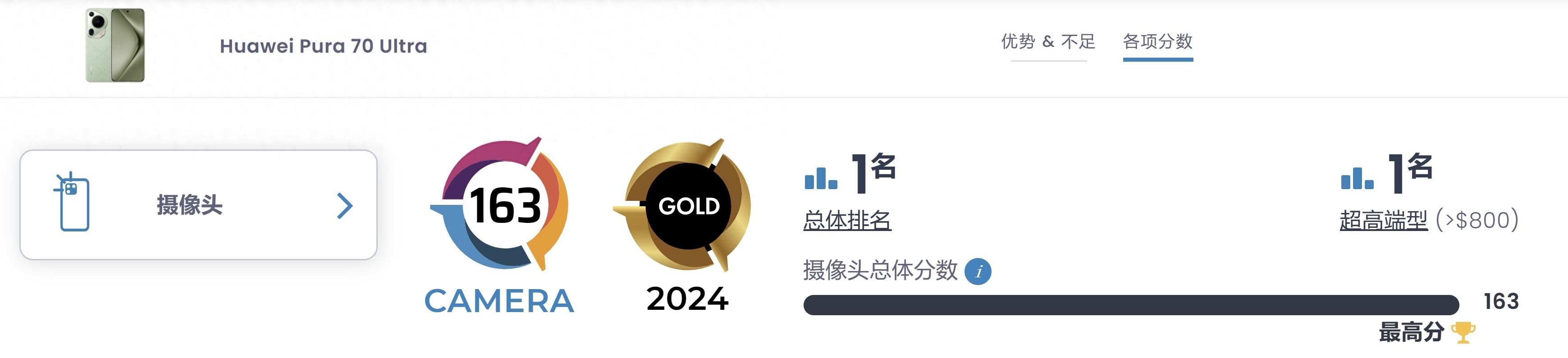 再看下排名第一的Pura 70 Ultra的细项得分: