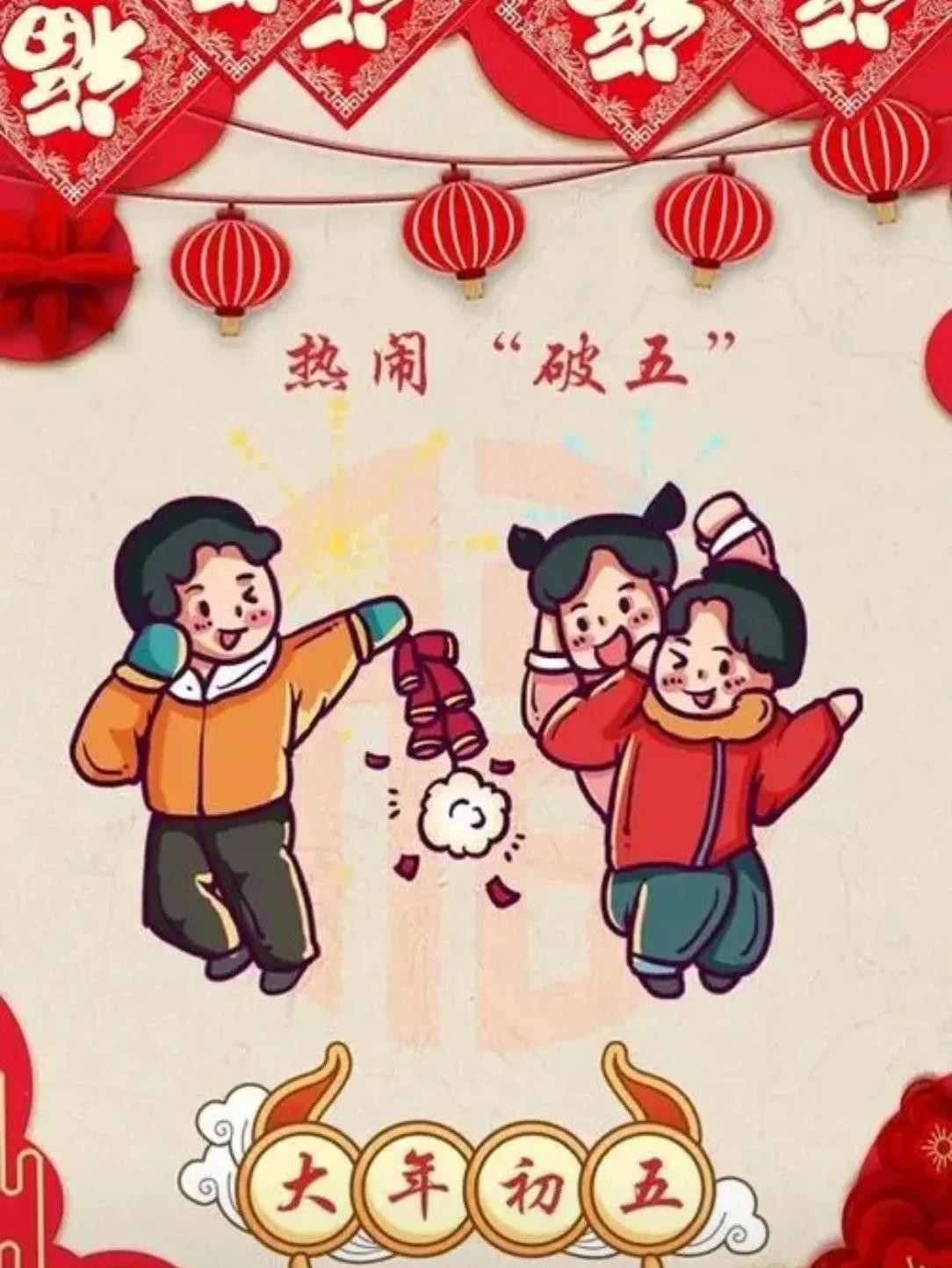 初五这一天要放鞭炮,将“五穷”这种穷鬼赶走,将晦气赶得越远越好。