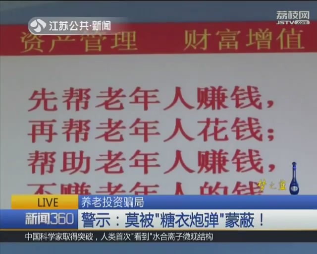 据江苏公共·新闻频道《新闻360》报道:不少老年朋友都希望手里的养老钱能够保值增值,将来好有个依靠。有一些不法分子就利用老年人的这种心理,以投资养老服务为名,实际上是在非法集资,而结果往往是断了资金链以后,卷款跑路。