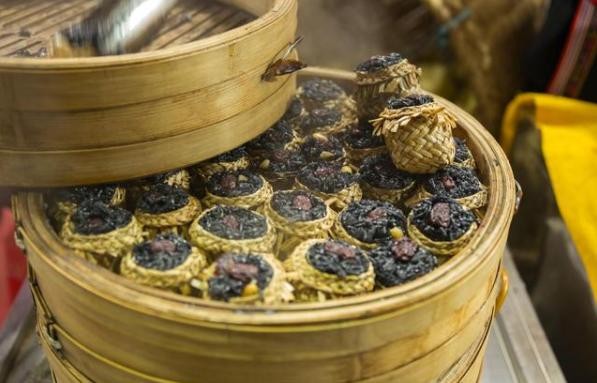 3、然后捞出糯米,上锅蒸熟,一锅乌稔饭就做成了。