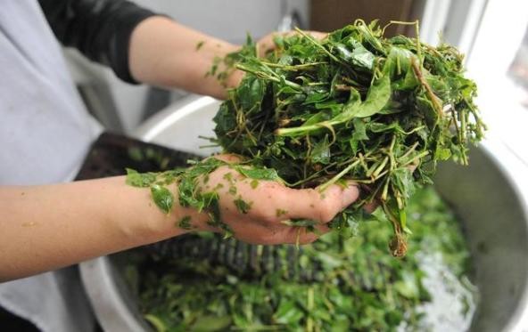 1、采摘下来乌稔树的新鲜叶子洗净,捣碎,越碎越好,加适当清水。也可以直接浸泡乌稔叶,时间按照实际情况确定,具体方法在后面。