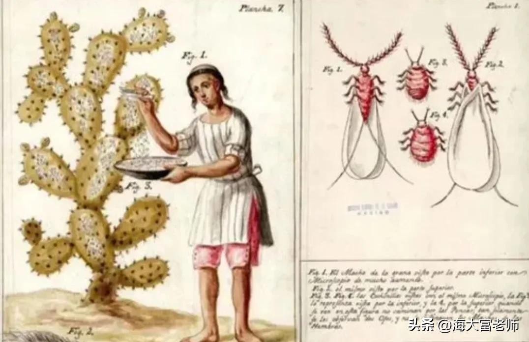 胭脂虫原产于墨西哥以及中美洲,是一种珍贵的经济昆虫,它们主要寄生在仙人掌类植物上,靠吸食植物的浆液为生。