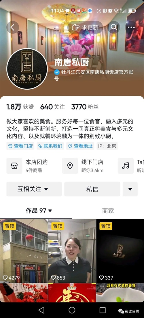 这是一个有品位、有意境、有文化的美食账号。夫妇俩都是乔帮主的朋友,从有开私厨的想法开始,就关注了,一直守候到装修、开业、爆火。环境优雅而又体现了国学文化精髓,菜品精致又有寓意,特级厨师展现绝佳厨艺,老板老板娘,豪爽又温情,如果你有好友来牡丹江,或者家人欢聚,这绝对值得你去品尝。序号十八,寓意发发发。