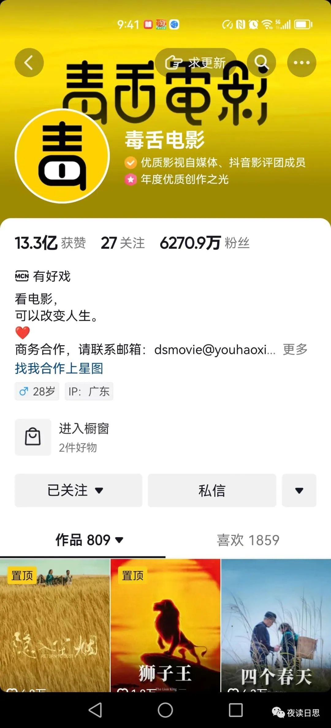 他说:看电影,可以改变人生。这是个拥有6270万粉丝账号,制作精良,解说过瘾,能让你了解到最新的电影剧情,让你在看电影的过程中,感悟人生。如果你喜欢看电影,这绝对是电影账号里的天花板级别。评论区,也非常精彩,让你知道什么是有才的网友评论员。