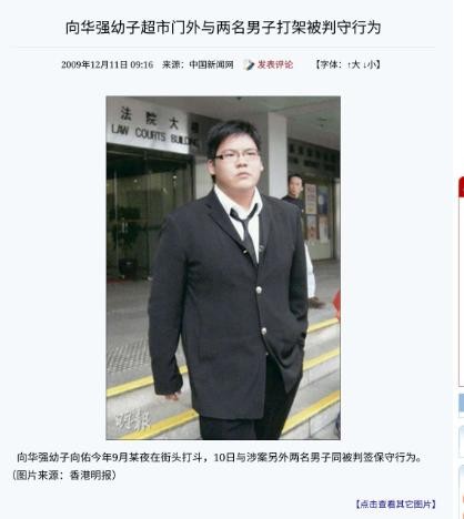 彼时年仅22岁的向佑带着9名友人与超市的运货工人发生冲突,围观群众报警之后,才发现领头的这位胖乎乎的小青年,正是向家的小公子。