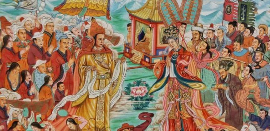 史料记载中,曾经在唐朝一次出现过三枚九眼天珠,发生在松赞干布与大唐结亲迎娶文成公主时期。
